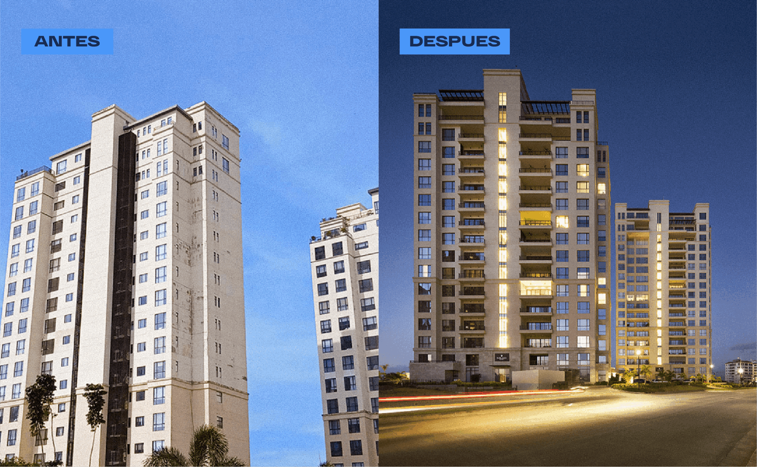 Se realizo:Se ejecutó un proceso completo de preparación de superficie, que incluyó la aplicación de tratamiento antihongos para prevenir la proliferación biológica, reparaciones de fisuras con Liquid Rubber A205 para asegurar una solución duradera y flexible, pintura de acabado, sellado con silicona en ventanas, mantenimiento de la carolina e instalación de wallcaps, como parte de las mejoras estructurales y estéticas del edificio.