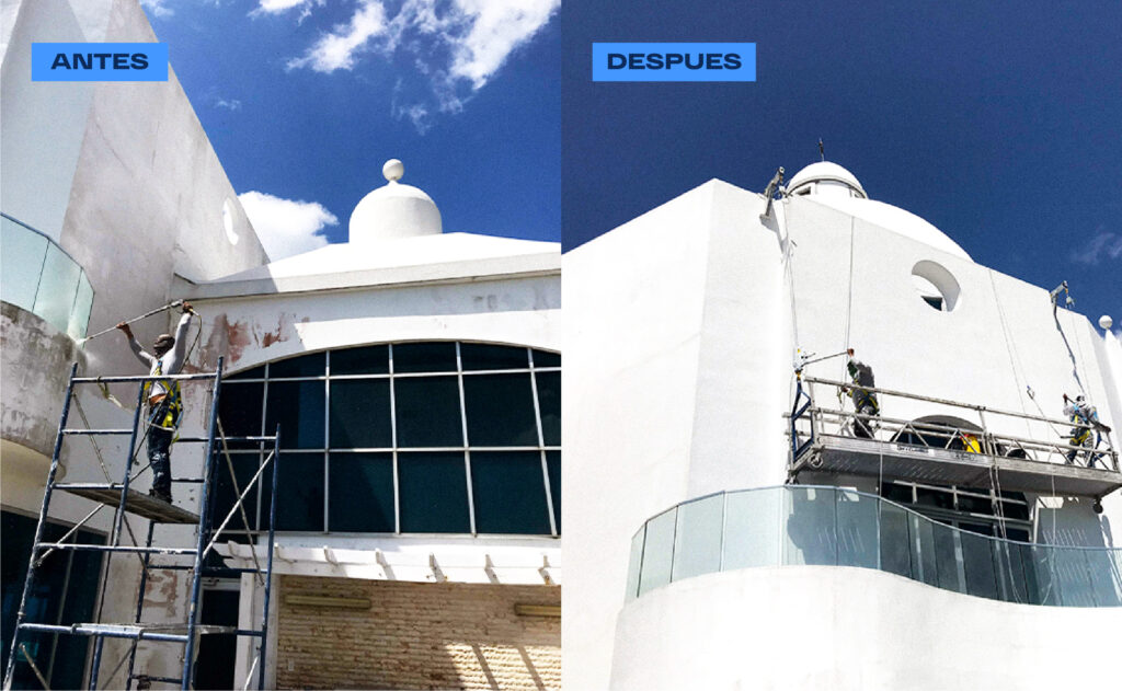 Se realizo:Se realizó un tratamiento completo de la superficie, con especial atención en la eliminación de hongos, debido al avanzado estado de contaminación biológica. Para asegurar una limpieza profunda y efectiva, se aplicó doble tratamiento antihongos, garantizando la erradicación total de esporas y previniendo su futura proliferación. Este proceso fue clave para preparar adecuadamente la superficie antes de continuar con los trabajos de sellado, impermeabilización y pintura.