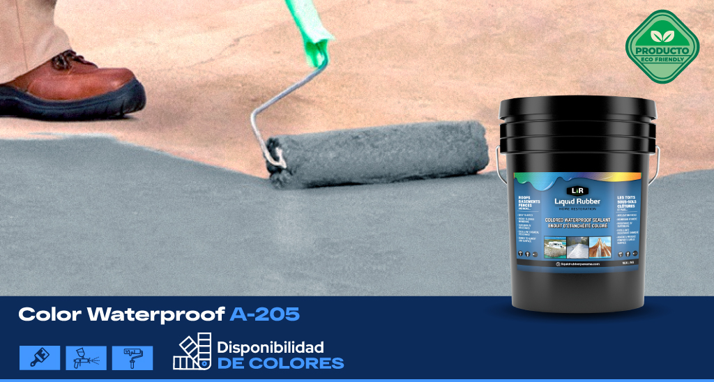 Liquid Rubber Color Waterproof A-205 es una protección elastomérica acrílica de alto desempeño, aplicable con brocha, rodillo y pistola Airless, que puede ser aplicado sobre cualquier tipo de material o superficies como concreto, madera, ladrillo, metal, entre otros; lo cual forma una membrana única, duradera, flexible, colorida y sin rupturas.